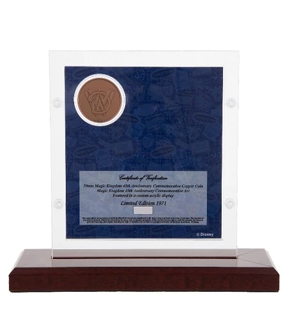 Display your Magic Kingdom 45th Anniversary coin in this beautiful display, with Cinderella’s Castle and logo.